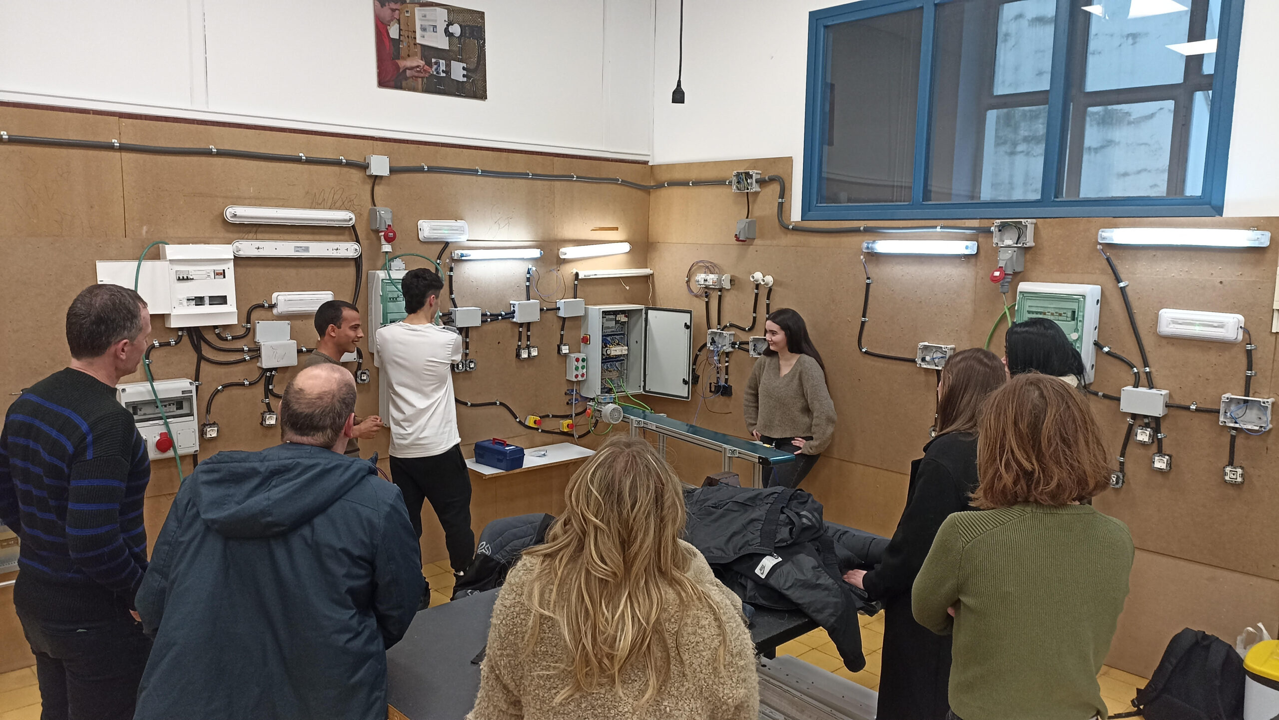Los alumnos del primer curso del ciclo Instalaciones Eléctricas y Automáticas, realizaron una presentación del reto en el que han estado trabajando ante familiares y profesores ayer por la tarde. Para los familiares fue una oportunidad única de ver en persona lo que están haciendo sus hijos. Recibimos mensajes de agradecimiento por parte de los familiares y los profesores también salimos con una buena sensación.